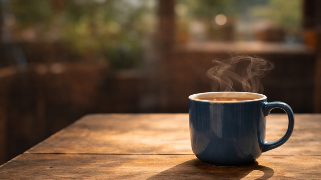 You walk in and see something already in motion — people settling in, coffee or tea nearby, and a simple way to join without needing an introduction.
