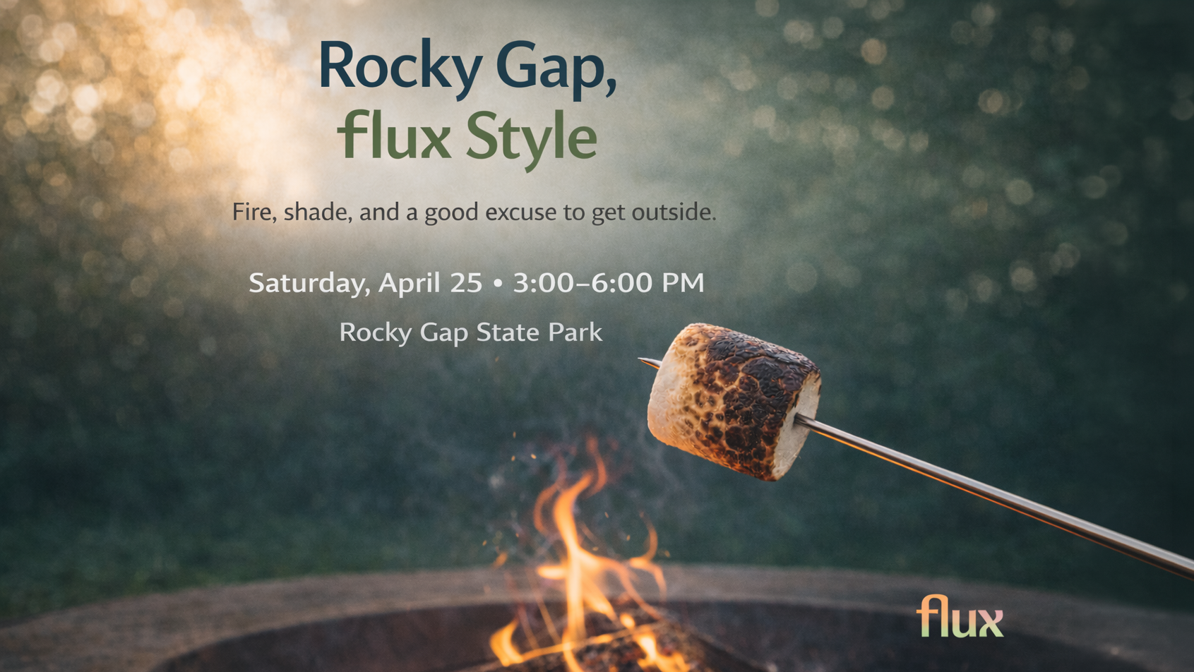 Rocky Gap State Park CampgroundEvent overview Join Cumberland Flux for a relaxed afternoon at Rocky Gap State Park on Saturday, April 25. We’ll be gathering in Elm Loop under the trees, just beside the beach, with room to settle in, talk, eat something simple, and enjoy being outdoors together. We’ll have the grill going, a campfire going, water on […]